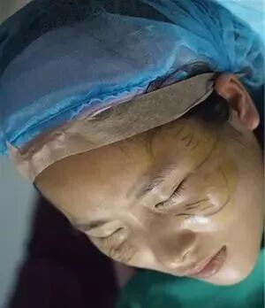 这是准备手术的时候,医生在我的脸上画呀画。